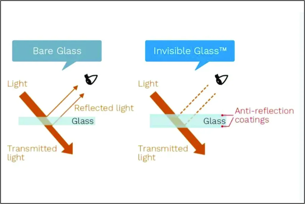 কাচটির প্রতিফলন (Reflection) কমানোর জন্য তারা এক ধরনের বিকীরণরোধী (Anti Reflecting) ফিল্ম ব্যবহার করেন। কাচের দুই পাশে ৩০টি স্তরে এ ধরনের অ্যান্টি-রিফ্লেক্টিং ফিল্ম ব্যবহার করা হয়। অ্যান্টি-রিফ্লেক্টিং ফিল্মগুলোকে ন্যানো মিটার স্কেলে একটির ওপর আরেকটি খুব সূক্ষ¥ভাবে স্থাপন করা হয়। ফলে মানুষের চোখে দৃশ্যমান আলোর শতকরা ৯৯ দশমিক ৮ ভাগ আলো কাচ ভেদ করে চলে যায়। আর বাকি দশমিক দুই ভাগ আলো, যেটা রিফ্লেক্ট করে তা মানুষের মস্তিস্কে তেমন গুরুত্ববহ প্রভাব ফেলে না।