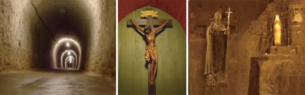 পোলিশরা সাধারণত ধর্মপ্রাণ কিন্তু খনি শ্রমিক পোলিশরা একটু বেশিই ধর্মপ্রাণ। কেননা ঝুঁকিপূর্ণ কাজ করতে সৃষ্টিকর্তায় বিশ্বাস-ভরসা রাখা অনেক বেশি দরকার। এই খনি কমপ্লেক্স খুঁড়তে গিয়ে যুগে যুগে অনেক শ্রমিক অকালে প্রাণ হারিয়েছেন। এ কারণে তিন চারটে চ্যাপেল (ছোট প্রার্থনার ঘর) গোছের গুহাও আছে ভিয়েলিচ্কায়। এর মধ্যে দুটোতে রয়েছে যিশু ও মাতা মেরির লাইক সাইজ মূর্তি। যা যথারীতি কালো-সবুজ রক-সল্ট দিয়ে নির্মিত। এখানে আর্টিফিশিয়াল বা কৃত্রিম আঘ্নেরগ্রাউন্ড লেক রয়েছে কয়েকটি। মানবসৃষ্ট খোদাইকৃত এ লেকগুলো লবণাক্ত পানি দিয়ে ভরা। এখানে নেই কোনো আলো। কিন্তু আঁধার পেরিয়ে ভেসে আসে পোল্যান্ডের সবচেয়ে বিখ্যাত পিয়ানিস্ট ও কম্পোজার ফ্রেডেরিক শোপিনের সুর মূর্ছনা। ধীর লয়ে মিউজিকের তালে তালে বাড়তে থাকে আলোর উন্মাদনা। এভাবে আলো-আঁধার আর সুর-তাল-লয় মিলিয়ে আশ্চর্য এক আবহ তৈরি হয় লবণ খনি ভিয়েলিচ্কায়।