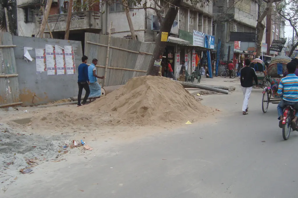 যত্রতত্র ফেলে রাখা নির্মাণ সামগ্রী