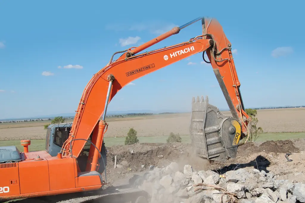এক্সকেভেটরের সাহায্যে কংক্রিট বর্জ্য অপসারণ
