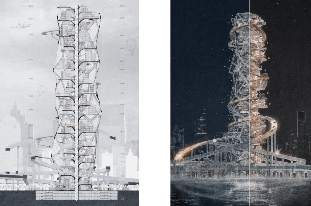 হাইওয়ে একদিকে যেমন চলাচলের জন্য অপরিহার্য, অন্যদিকে এটি শহরের ভেতরের জীবনকে বিচ্ছিন্ন করে দেয়। এমনই এক দ্বন্দ্বের মধ্যে দাঁড়িয়ে আছে সমসাময়িক আমেরিকান মহানগর। Highway as Habitat, এই প্রকল্পটি সেই দ্বন্দ্বকে পুনর্বিবেচনা করে। এখানে হাইওয়ে আর বিভাজনের প্রতীক নয়, বরং সেটিই হয়ে ওঠে এক নতুন উল্লম্ব শহরের ভিত্তি।