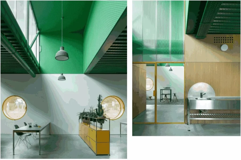 ভবনে কোম্পানির কর্পোরেট রং সবুজ ও হলুদ ব্যবহার করা হয়েছে। ছবি: আর্কিটেকচার টুডে